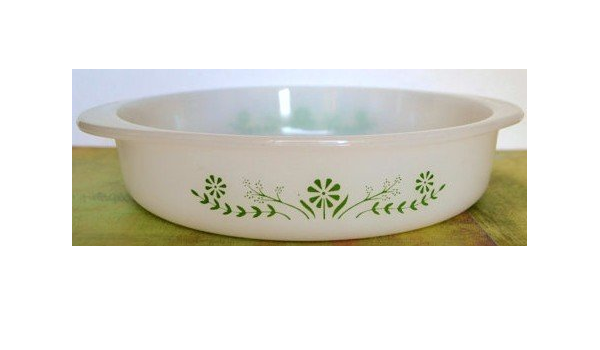 Vintage Glasbake Pyrex Green Daisy Floral Milk Glass Pie Dish Casserole Amazon Ca Home