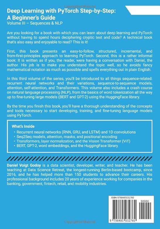Deep Learning With Pytorch Step By Step A Beginner S Guide Volume Iii Sequences Nlp Voigt Godoy Daniel 9798485032760 Amazon Com Books